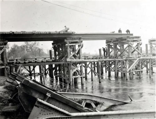 An der Mulde eine hölzerne Brücke ….