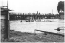 An der Mulde eine hölzerne Brücke ….